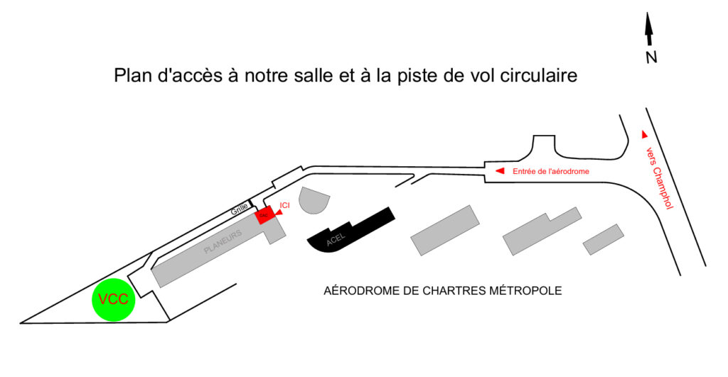 La salle du club et les pistes de vol circulaire et de modèles légers sont situées sur l’aérodrome de Chartres Métropole.